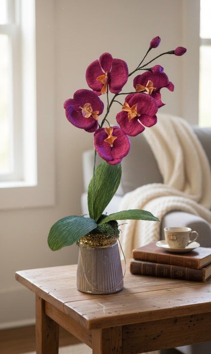 Every flower is hand-cut, hand-shaped, and hand-dyed using premium Italian and German crepe paper to achieve lifelike detail and lasting vibrancy. Perfect for book lovers, writers, home libraries, studies, or desks—bringing a touch of scholarly elegance and everlasting color to your space, with zero maintenance.